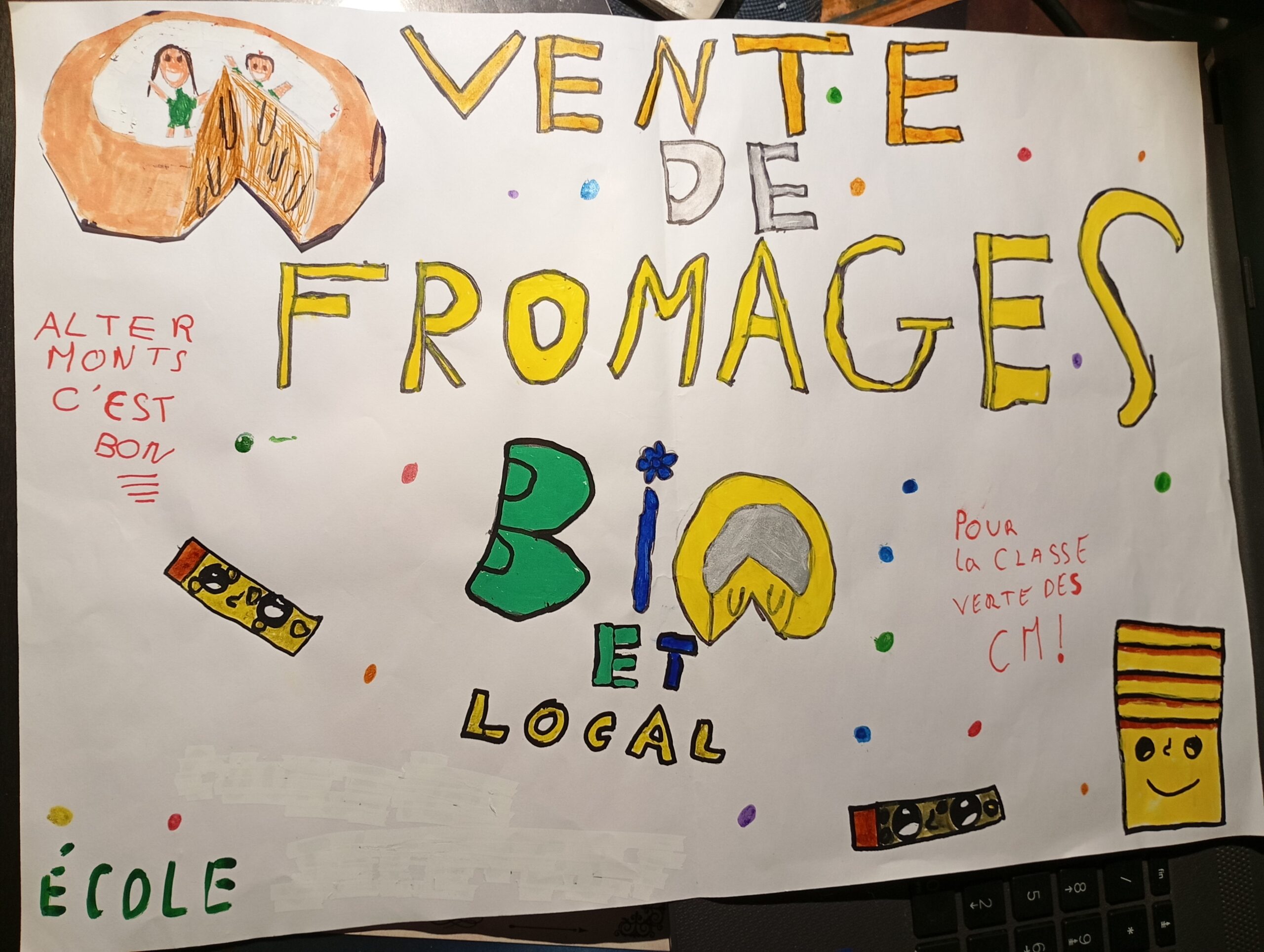 Depuis plusieurs années maintenant, nous encourageons les ventes de fromages AlterMonts dans les écoles. Le principe ? Financer des projets scolaires en faisant découvrir localement nos fromages bio et locaux. A chaque vente, un pourcentage est reversé aux associations portant des projets pour les enfants. L’institutrice de l’école de Courzieu a eu l’ingénieuse idée d’utiliser le prétexte de cette vente pour créer un vrai projet pédagogique pour ses élèves de CM1. Elle nous raconte cette vente, qui a été une réussite tant sur le plan financier que sur le plan pédagogique !
